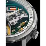 加えて、裏蓋にはシースルーケースバックを採用し、音叉やコイル、装飾まで含めたムーブメント全体を視覚的にも堪能できます。いわゆる「スペースビュー」が持つ前衛性はそのままに、鑑賞体験としての完成度を高めた設計です。