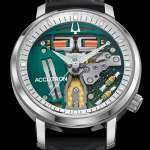 360Hzの#Fのハム音と、滑らかに動く秒針というアキュトロンの象徴的要素は忠実に再現。一方で、音叉の振動を動力へと変換するインデックス車にはLIGA工法を採用し、直径わずか3.6mmの部品に400歯という精密構造を実現しています。