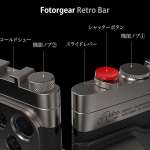 カメラの軍艦部にあたる「スマートコントロールバー」には、赤いシャッターボタン、スライドレバー、2つの機能ノブ、コールドシューが搭載されていて、専用アプリ「Fotorgear」と連動することで本物のカメラのように操作することが可能です。