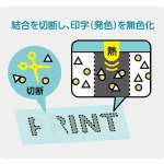 宅配便の伝票ラベルやレシートなどには感熱紙が使われています。感熱紙にはふたつの材料が入っており、熱を加えることでこのふたつが結合し発色する仕組みになっています。「ラベケシ」のインキは、この結合を切断する作用があり、印字されたものを消せるというわけです。