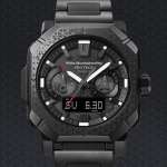 性能はもちろん、街にも馴染む重厚かつシャープなデザインもその魅力。White Mountaineeringを象徴するマットブラックを纏った今作で、まず目を引くのがトライアングルパターン。前作のコラボでもダイヤルに施されていたアイコニックな模様が、今作ではベゼルにまで広がりより印象的に。