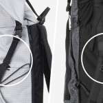トップリッドはなく、ロールトップ型。防水性や容量調整に優れる一方、荷物の出し入れに手間がかかる印象がありますが、「LUNDY LT」は、ロールトップを開けずにサイドから荷室へアクセスできる構造を採用。特に50Lモデルはトリプルファスナーで、側面をトップから大きく開けられる仕様に。重心を考えて、高いところにクッカーなど重めのモノ、奥に寝袋などを積めることが多いですが、テント場での寝床を作るときの荷物の出し入れがしやすそうでかなりイイ感じ。