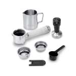 本体にはミルクジャグやタンパーなどの基本アクセサリーが付属。別途ツールを買い足すことなく、購入後すぐに抽出やスチーム操作を始められます。