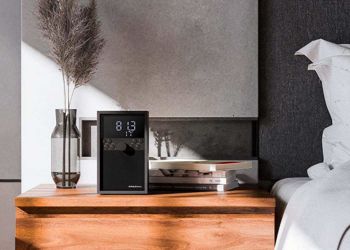 そこで注目したいのが、amadanaから登場したワイドFM対応クロックラジオ。「RC20」(2万7500円)と「RC10」(1万6500円)の2モデルがラインナップされ、機能性とインテリア性を両立した設計が特徴です。時計表示を備えたコンパクトな筐体は、デスクやベッドサイドに自然に収まりつつ、空間の印象を整える存在感を放ちます。