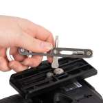 機能としてはカメラ周りの機材調整で使用頻度の高い、コインドライバーと、3mm・4mmの六角レンチの3つを備えており、主に三脚のプレートや雲台などを調整するのに重宝します。各ツールは折り畳み式になっているため、収納時は工具部分が飛び出さずに安全です。