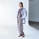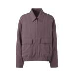 続く「ショートブルゾン」(7990円)は、かっちりしすぎない綺麗めスタイルにも合いそうなシルエットが嬉しいユニセックスな1着。なめらかな着心地の素材を採用。フロントファスナーが歯の見えない仕様で、小慣れ感がアップ。同色のグログランテープの引き手も目立たずスッキリした印象です。袖部分はボタン仕様、まくってのスタイリングも楽しそう。パープルとブラック、ホワイトと全色揃えてもいいはず。
