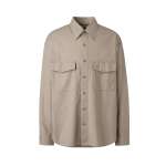 続いてはトップスを。「ワークオーバーサイズシャツ」(4990円)は、主張しすぎないミリタリー感がちょうどういい1枚です。さらさらの手触りの生地は、これから気温が上がってくる季節に重宝しそう。適度なスラブ感でさりげなく表情が出せるのもいいんです。胸元には、ボタンを隠したダブルポケットを配置。ボタンはミリ由来の猫目ボタンを使うなど細かなこだわりも。なお、襟は若干大きめと「Uniqlo U」らしさも光ります。