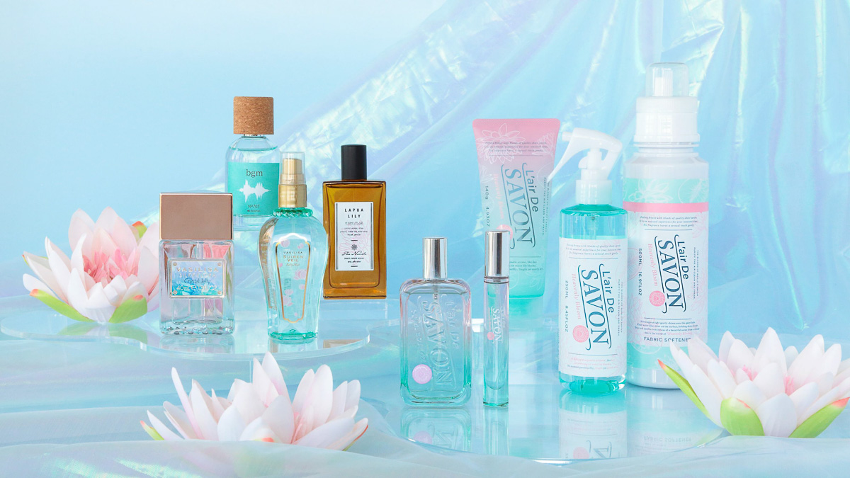 いずれの商品も、水を連想させる“アクアティック”、そして透明感のある“シアーフローラル”を掛け合わせ生まれた“アクアティックフローラル”の香りをベースに採用。夏にふわっと香った瞬間に、清涼感をも与えてくれる爽やかな仕上がりが特徴です。