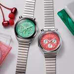 ポップなグリーンとレッドは、まさに“PLAYGROUND”の名に相応しいところ。さまざまな“遊び場”に連れて行きたくなるはず。また、秒針もそれぞれホワイトとオレンジと、デザイン性+視認性を両立しています。