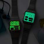 アナデジテンプ「JG2170-59Y」(3万6300円)、サーモセンサー「JG2120-73L」(4万700円)は、どちらも1980年代に発売されたモデルがベース。アナログとデジタル表示がMIXされたデザインは、まさに90年代テイスト。デュアルタイムでの時刻表示にスプリットタイム計測、温度計測ほか、時刻を確認するプラスアルファの機能がたっぷり。
