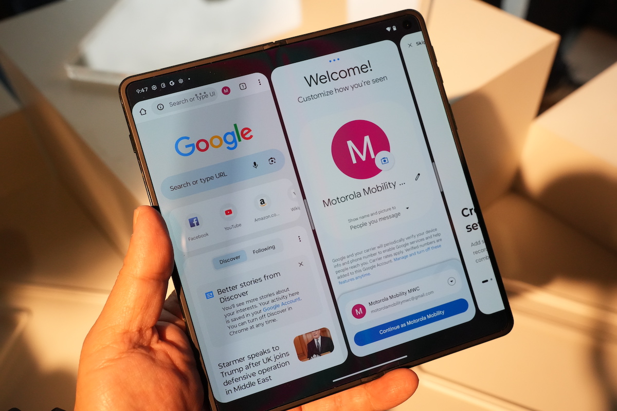 モトローラは1月に発表済みの折りたたみスマホ「motorola razr fold」の実機を公開しました。同社初の横開きタイプのスマホで、折りたたみ時は6.6インチ、開くと8.1インチの大画面を利用できます。