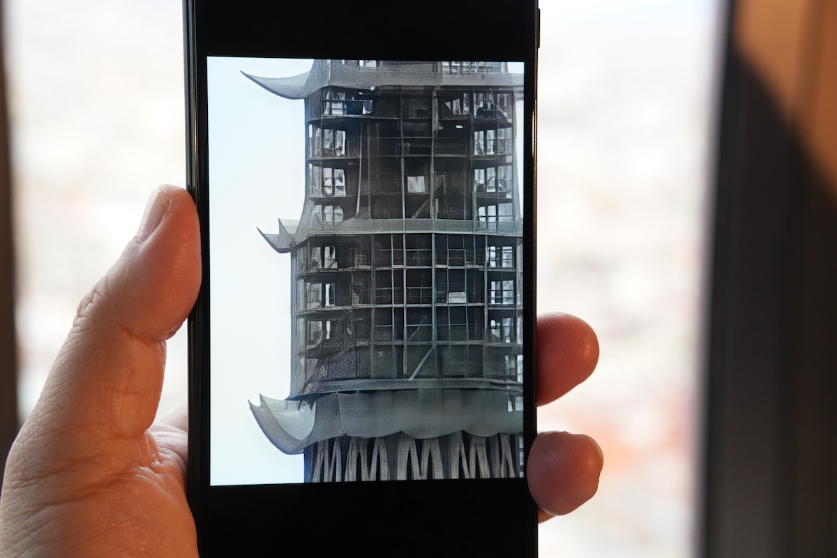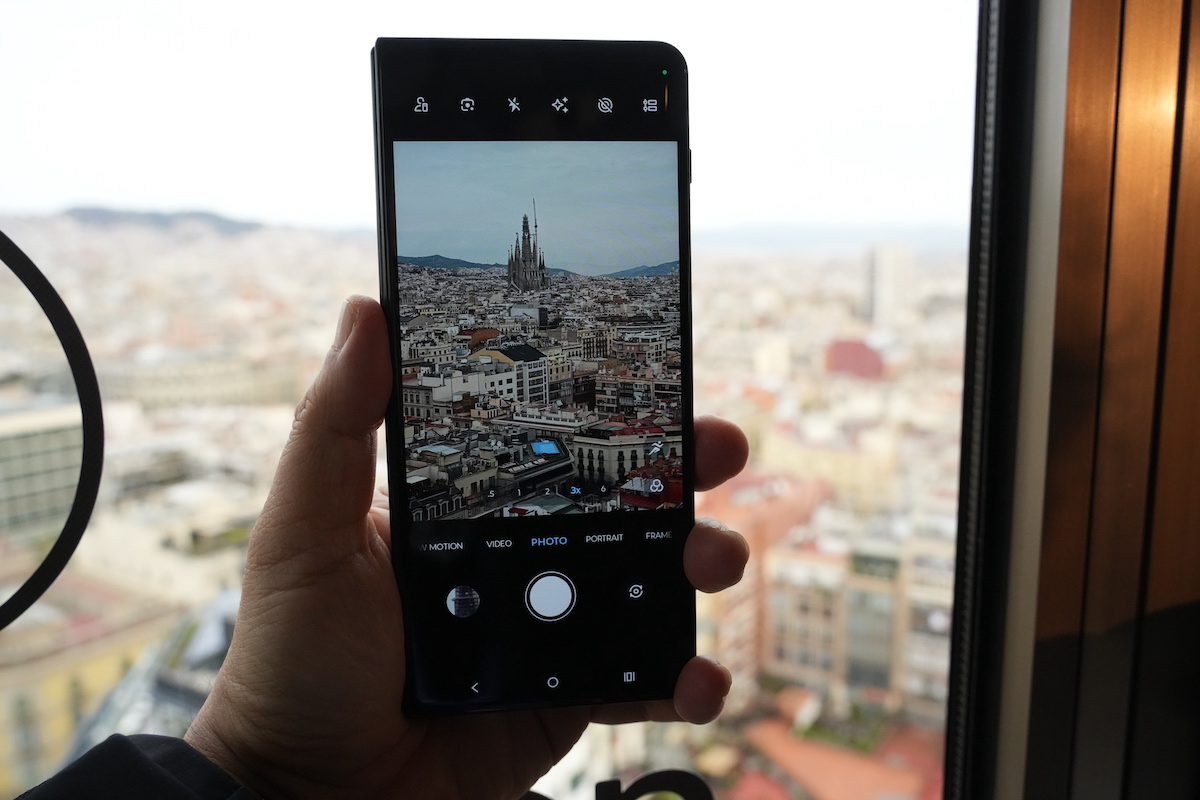 モトローラが強くアピールしていたのがカメラ性能。5000万画素のトリプルカメラを搭載し、カメラ性能を評価するサイト「DXOMARK」において、フォルダブルスマホで史上最高の評価を獲得したとのこと。望遠カメラは光学3倍で、デジタルズームを組み合わせて最大100倍で撮影可能。高倍率で撮った画像はAIによって補完処理が行われるのですが、試してみると、なかなかの精度でした。