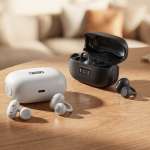 イヤホン本体に付いているマイクだけでなく、充電ケースのマイクでも集音できるようになっています。例えば、テレビの近くにケースを置いておけば、よりクリアに音が拾えるということ。最大約10mまで離して置いてもOKです。