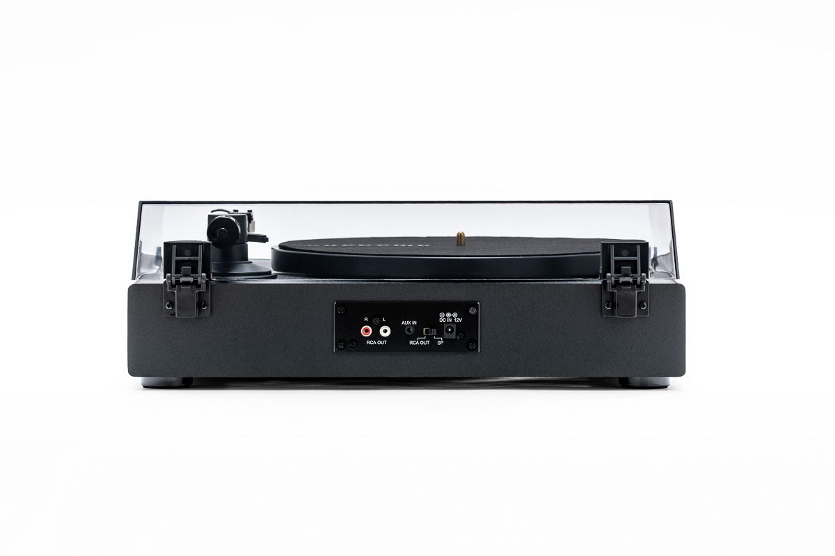 シンプルな佇まいのこのレコードプレーヤー、こう見えてスピーカーを内蔵した一体型。別途スピーカーを用意する必要がなく、この1台で音楽を再生できるのが初心者にとってはうれしいところ。