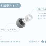 ちなみに重さは、軸Sサイズ+イヤーピースMサイズで、しっかり遮音タイプが約0.5g、やさしい遮音タイプが約0.6g、やわらか装着タイプは約0.4gと極軽です。