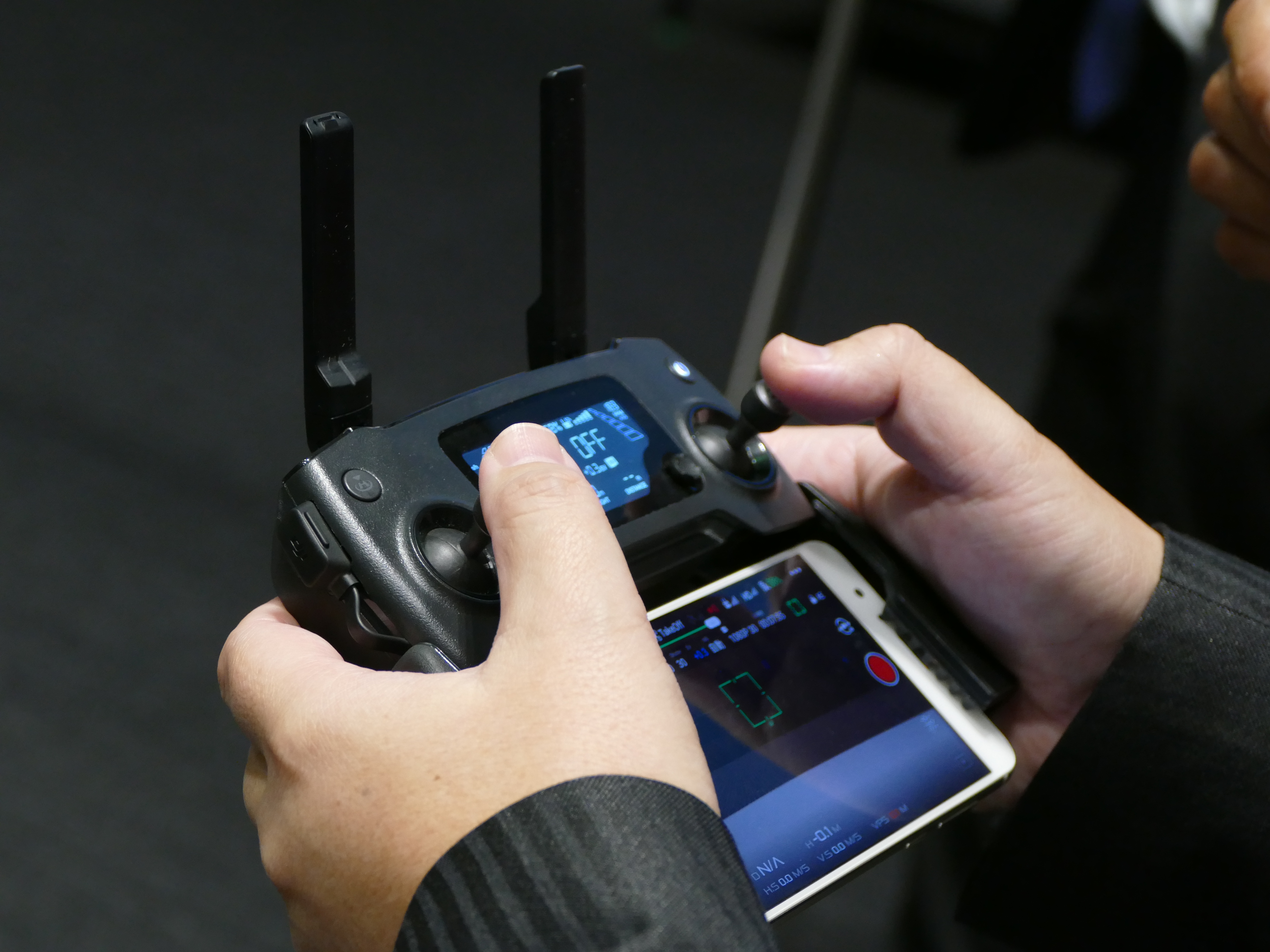 同発表会では、タッチアンドトライの場も設けられました。せっかくなので「MAVIC PRO」操縦の流れをご紹介しましょう。