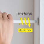 そして、壁と設置するグリップ部分には直径3cmの大型のパッドを新たに採用。パッドと壁との摩擦力に、独自構造による圧着力が加わることで、従来のバネ式モデルに比べて約2倍という最大耐荷重20kg(つっぱり棒30 極ピタの場合)を実現しています。
