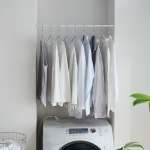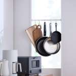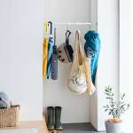 たとえば、部屋の隅に設置してハンガーラック代わりに洋服を吊るしたり、キッチンの小窓に設置してよく使う調理用具をぶら下げて並べたり、玄関に設置して傘置きにしたり。なお、カラーはやさしいマットホワイトとなっています。