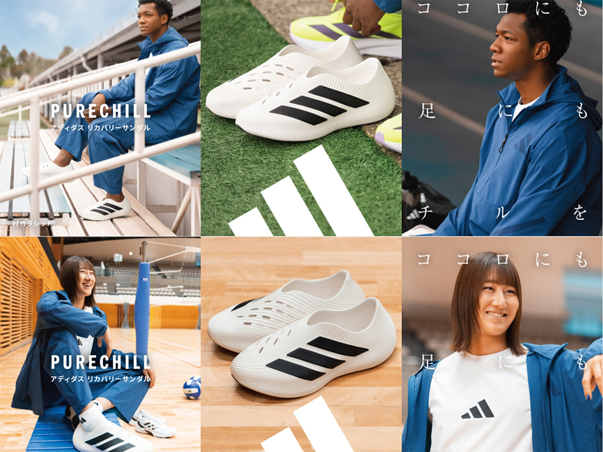 と、言うことで見つけてきました、これからの季節に相棒としてふさわしいサンダルを。それがアディダスの新しいリカバリーサンダル「PURECHILL」と「PURECHILL SLIDE」です。