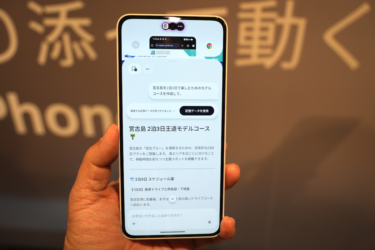 ▲例えば、宮古島に関するウェブサイトを表示させた状態でAIボタンを押すと……