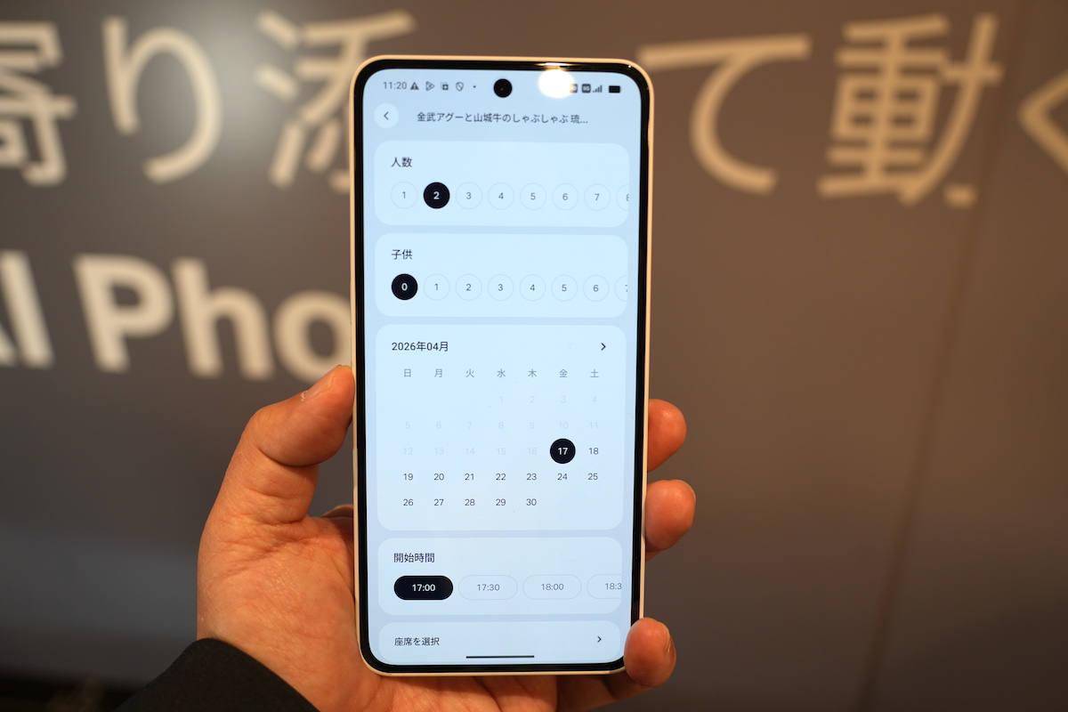Natural AI Phoneは、そのNatural AIを素早く起動できるように設計されています。右側面に搭載されたAIボタンを押すと、その時にスクリーンに表示されている情報について質問したり、相談したりできます。たとえば、Instagramで気になる料理を見つけた時にAIボタンを押すと、それを食べられる店が検索され、予約に導いてくれたりもします。予約した日時を「カレンダー」に登録したり、予約した情報を「Gmail」や「LINE」で友人と共有することも可能。それぞれのアプリを起動することなく、複数のアプリをまたがってシームレスに操作できるわけです。