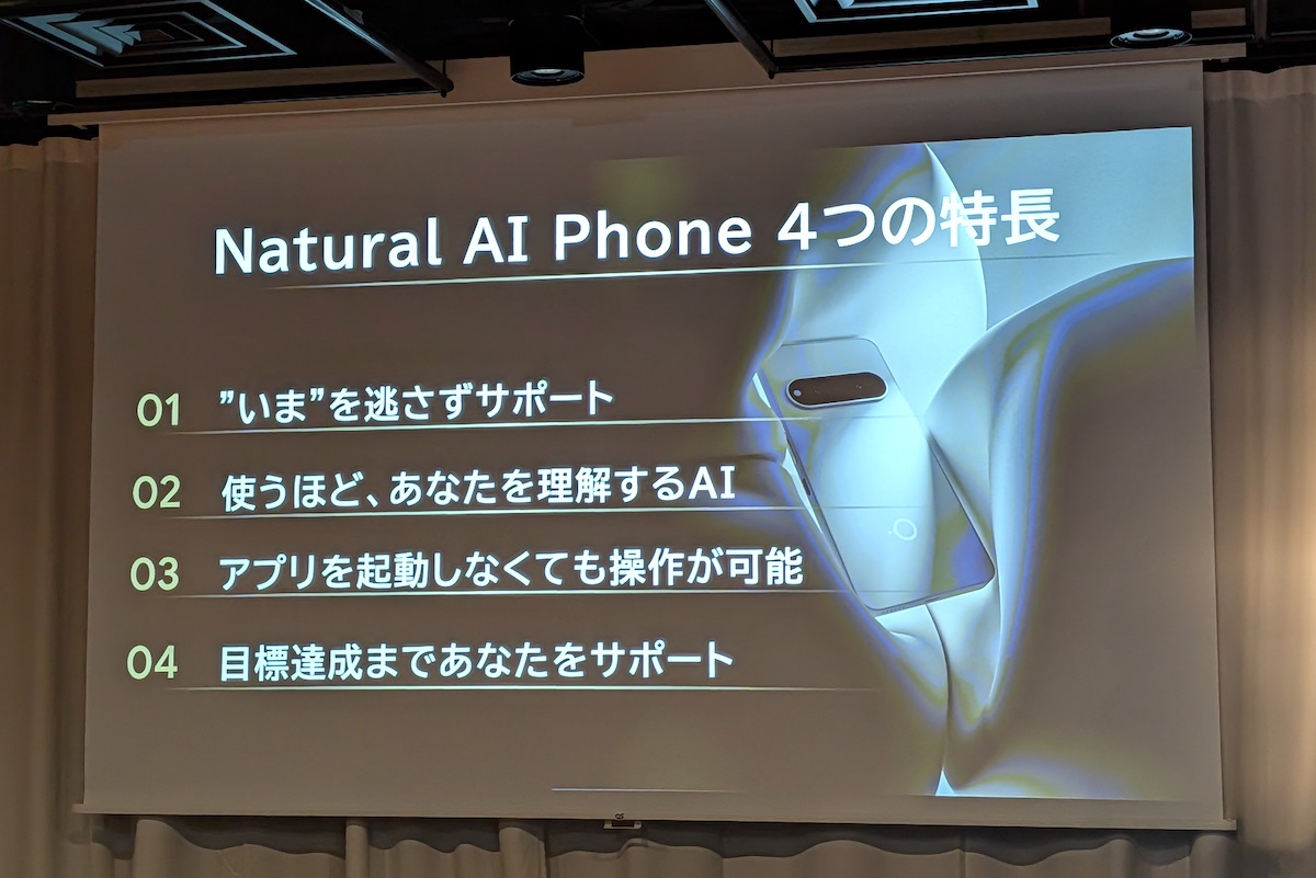 ソフトバンクが4月24日に「Natural AI Phone」というスマートフォンを発売しました。アメリカのBrain Technologiesというスタートアップが開発したAIを搭載するスマホで、チャットの感覚で気になることを素早く調べたり、ユーザーの嗜好を学習して、おすすめの製品を提案してくれたり、それを購入したりできるというもの。