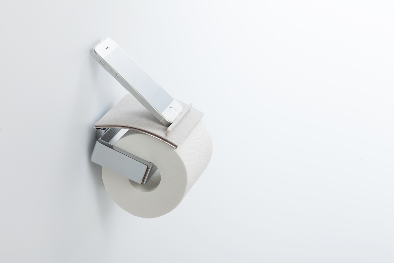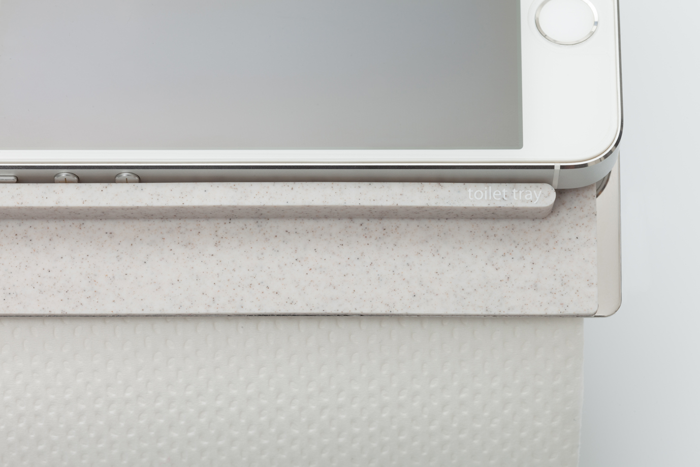 「トイレトレイ」は、つけるだけでペーパーホルダーがちょい置きトレイになる、ありそうでなかった商品。これがあれば、トイレでスマホやポーチ、財布やアクセサリーなどの置き場所に困ったときでも大丈夫。柔らかいシリコン素材は滑り止めになり、スマホなどをホールド。落下してキズが付くこともない。