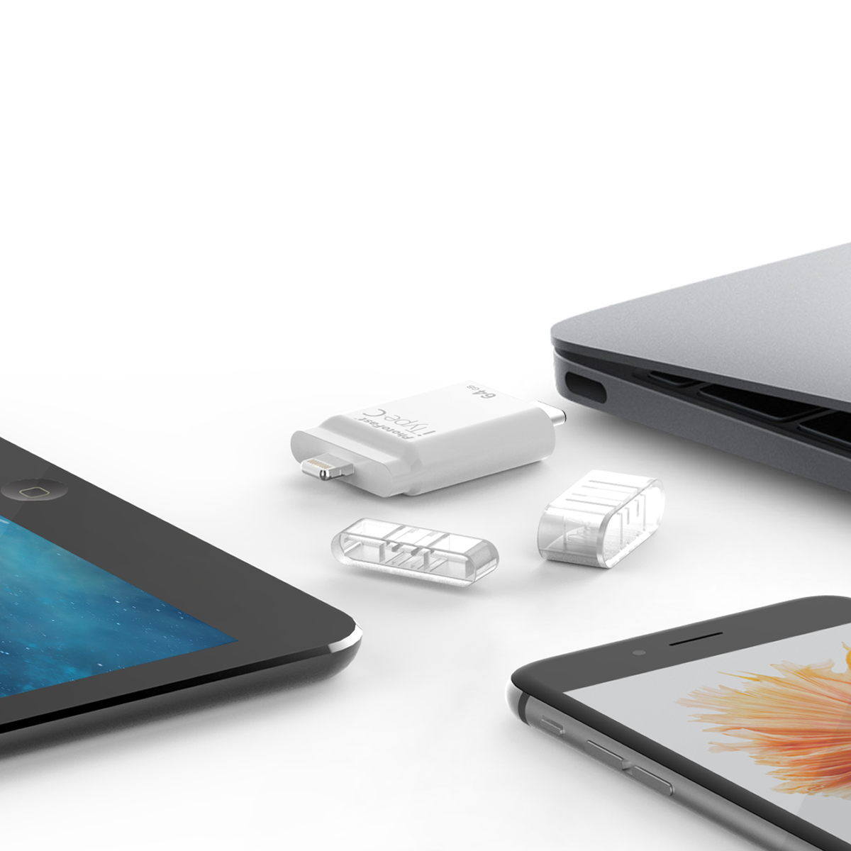 「iType-C」はLightning、Type-C、USB3.0、MicroUSBという4つの最新コネクタを搭載。最新のiOSデバイスとWindowsやLinux、Androidシステム間でのデータ交換を実現しています。