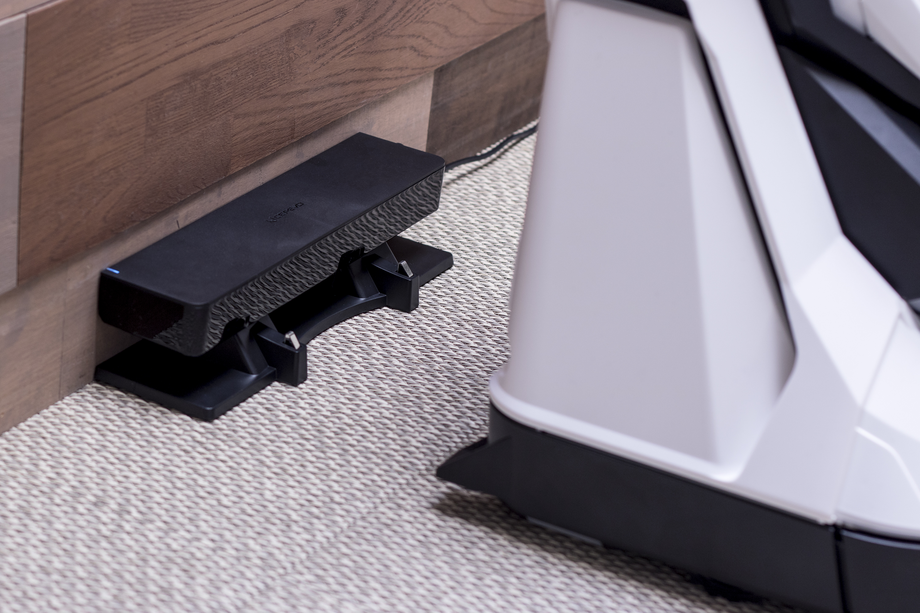 家の中を自分で動き回り、設定した場所に到着すると、ぐぐっと立ち上がるようにして “プロジェクション状態” へ変形し、映像投影をしてくれます。普段の移動形態のときは高さ420mm、立ち上がると810mmとなります。