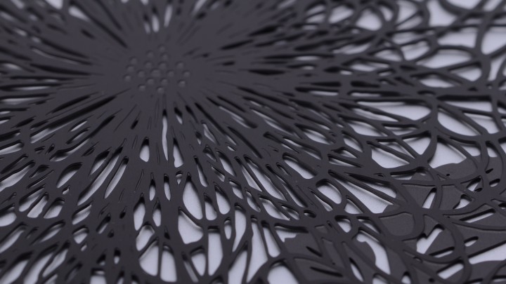 菊の中でも特に繊細な糸菊の花びらを透かし彫り風にアレンジしています。日本の伝統文様と伝統的色彩の研究家、成願義夫氏とのコラボモデルです。