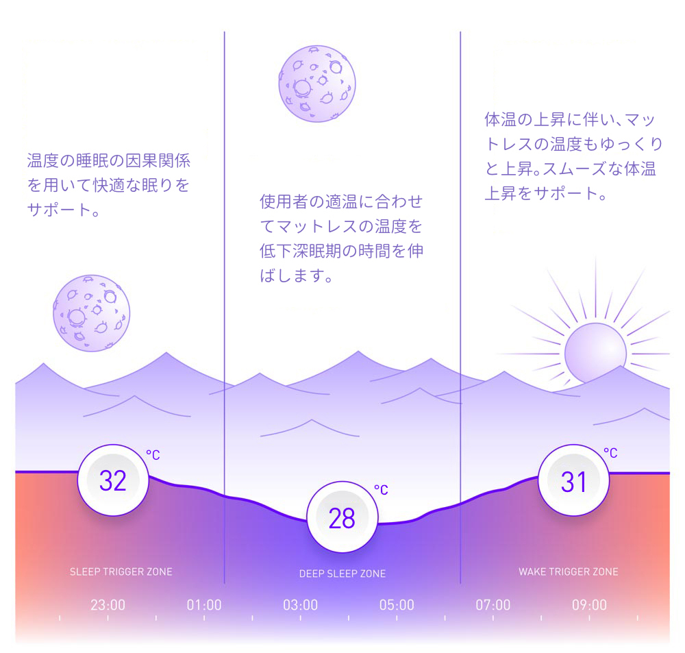膨大な量の研究データから得られた適温に調整し、深い睡眠へ誘ってくれます。しかも、上半身、腰周り、足元と場所ごとに分け適切な温度を設定。ただの電気毛布とはまったく異なる製品なのです。