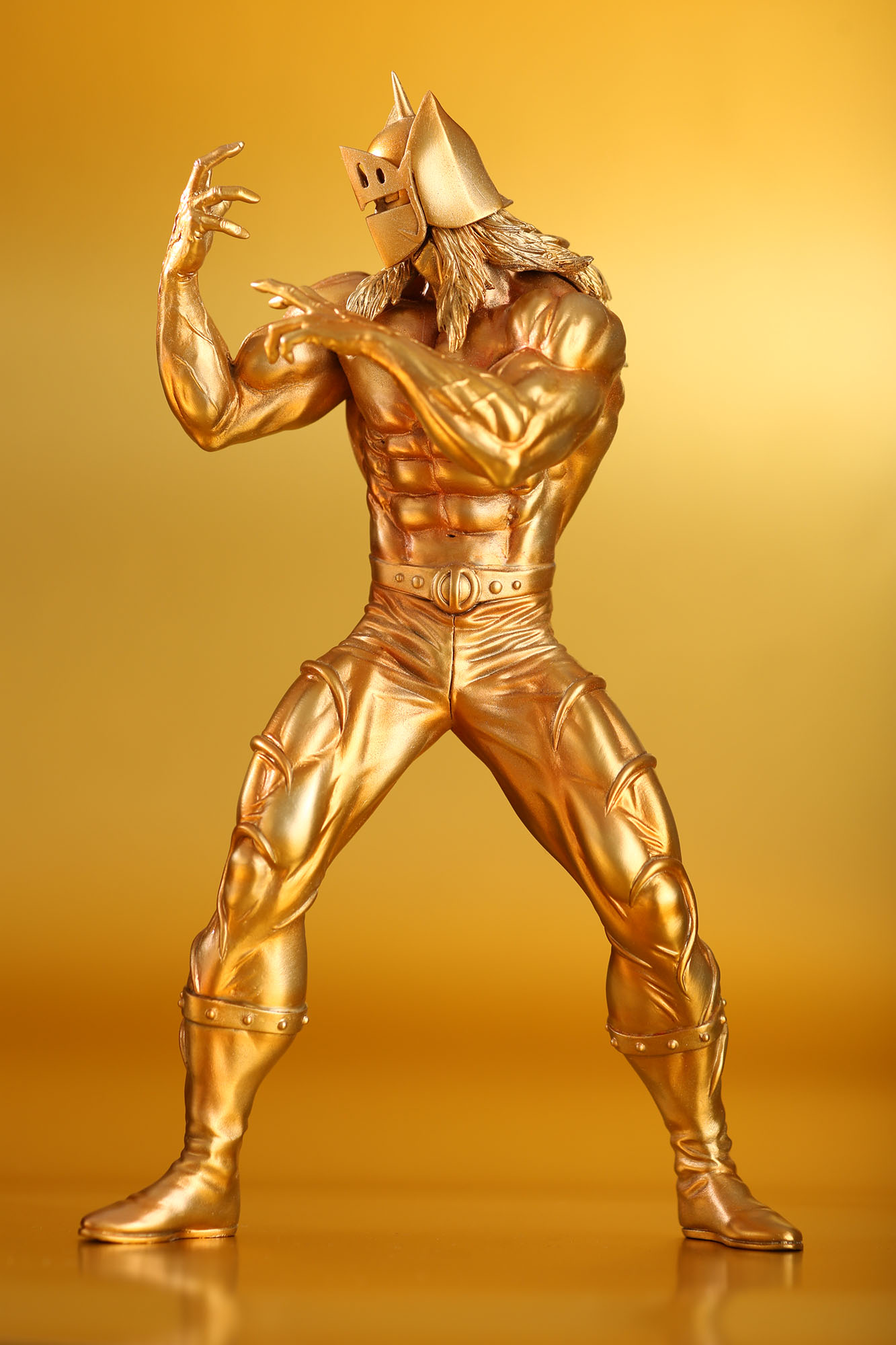 ・キン肉マン2世の最終決戦でサンシャインの砂金を纏った姿を、純金箔でリアルに再現した「ゴールデン・メイルストロームパワーver.」