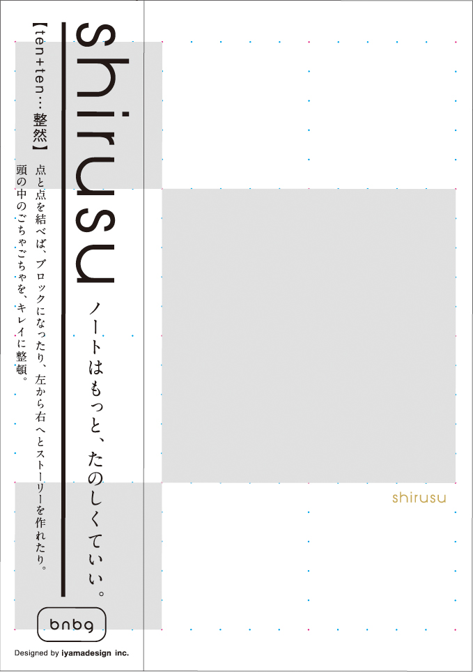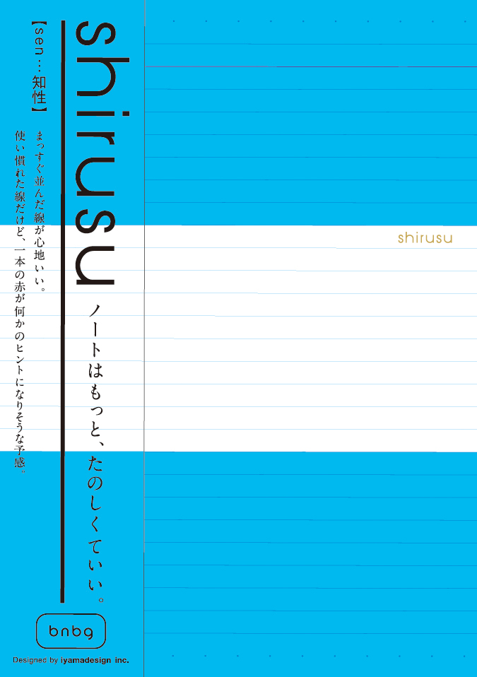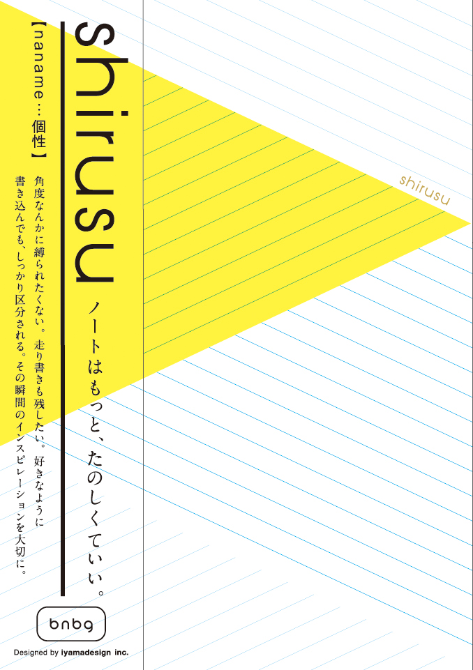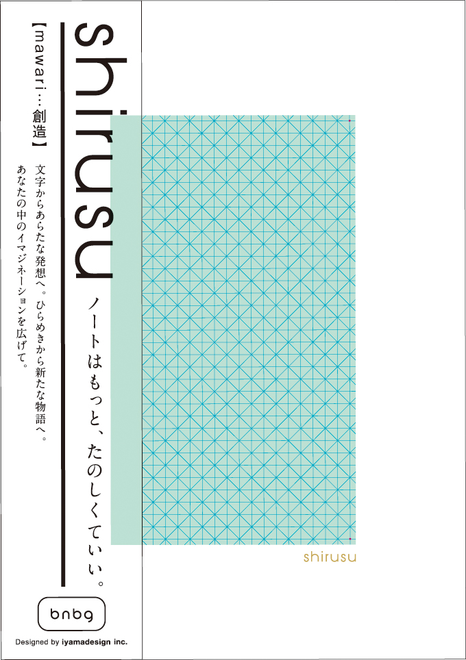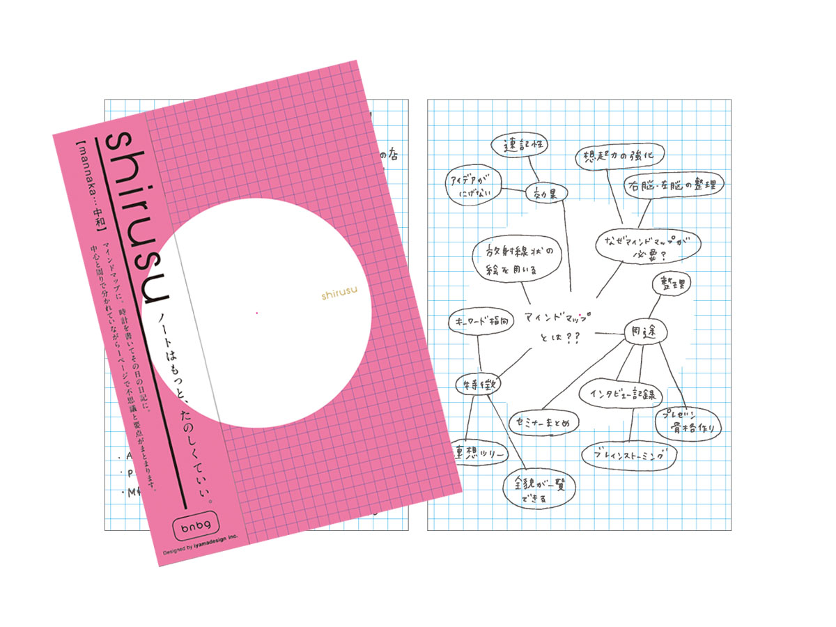 学研ステイフルがアートディレクター居山浩二氏と立ち上げた文具ブランド “bnbg” から発売される「shirusu」。一見普通のノートですが、中面は、円グラフや斜め線、斜め掛け罫線などちょっと変わったフォーマットのノートです。ただ文字を書くだけでなく、イラストやアイデアメモなど情報を記すのにも柔軟に対応できるから、まさに “頭の中を書き記す” ことができちゃいます。