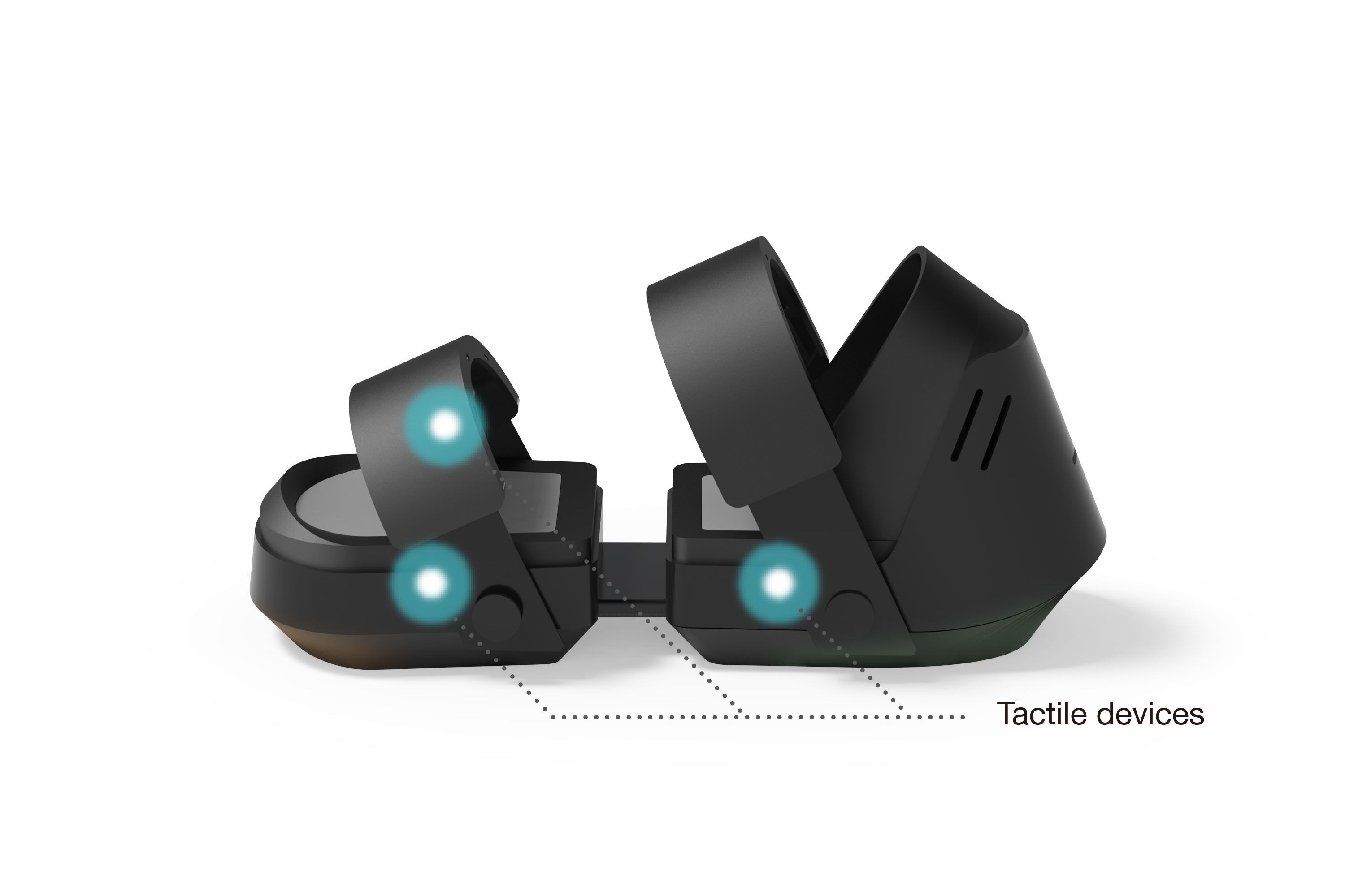 この触感の鍵となるのが、各部に搭載されているタクタイル・デバイスと呼ばれるシステムで、細かな振動を自在に変更することができ、砂漠、草原、水辺などの地面を踏みしめたときの触感の違いなどをVR空間で再現します。