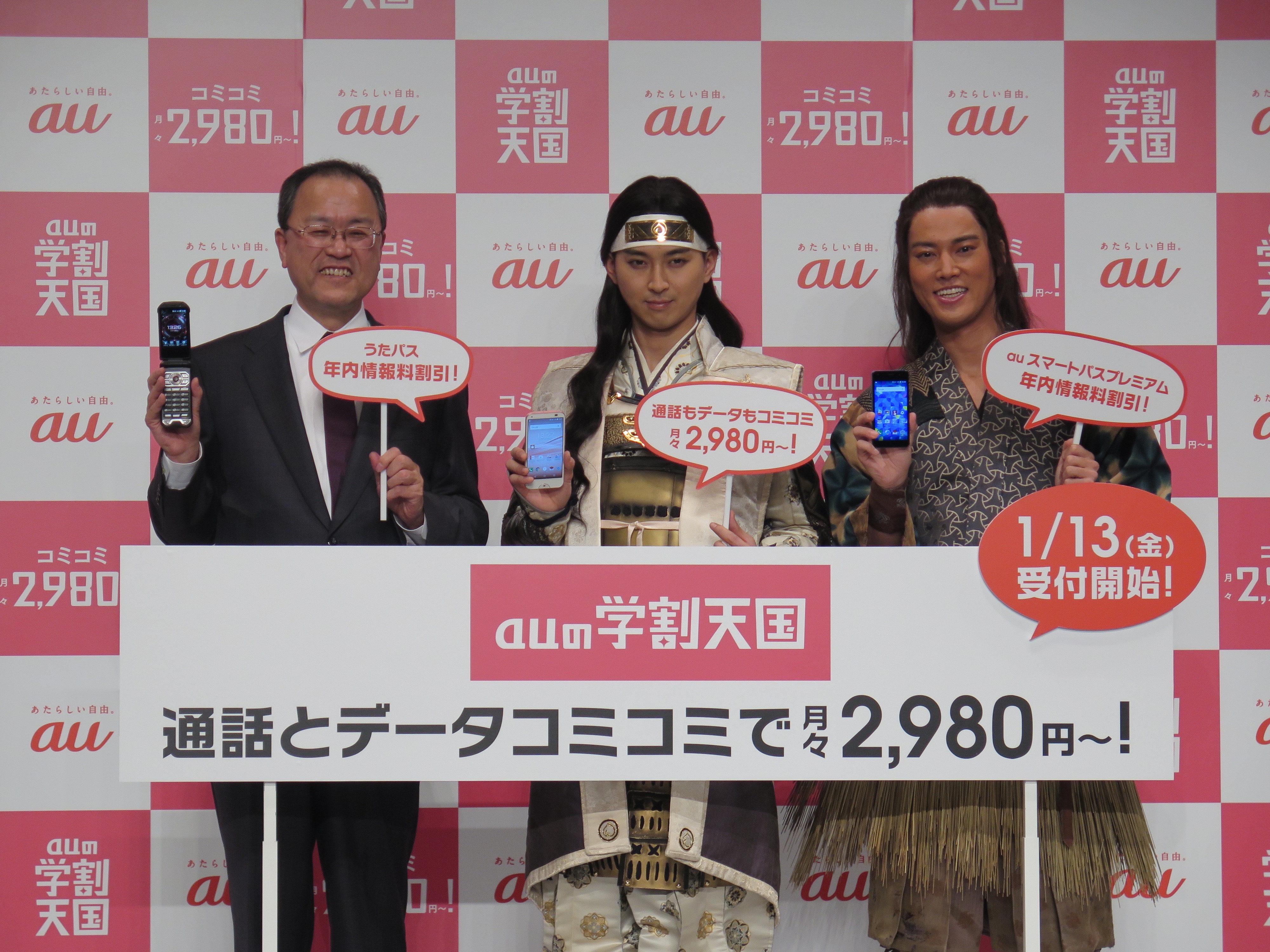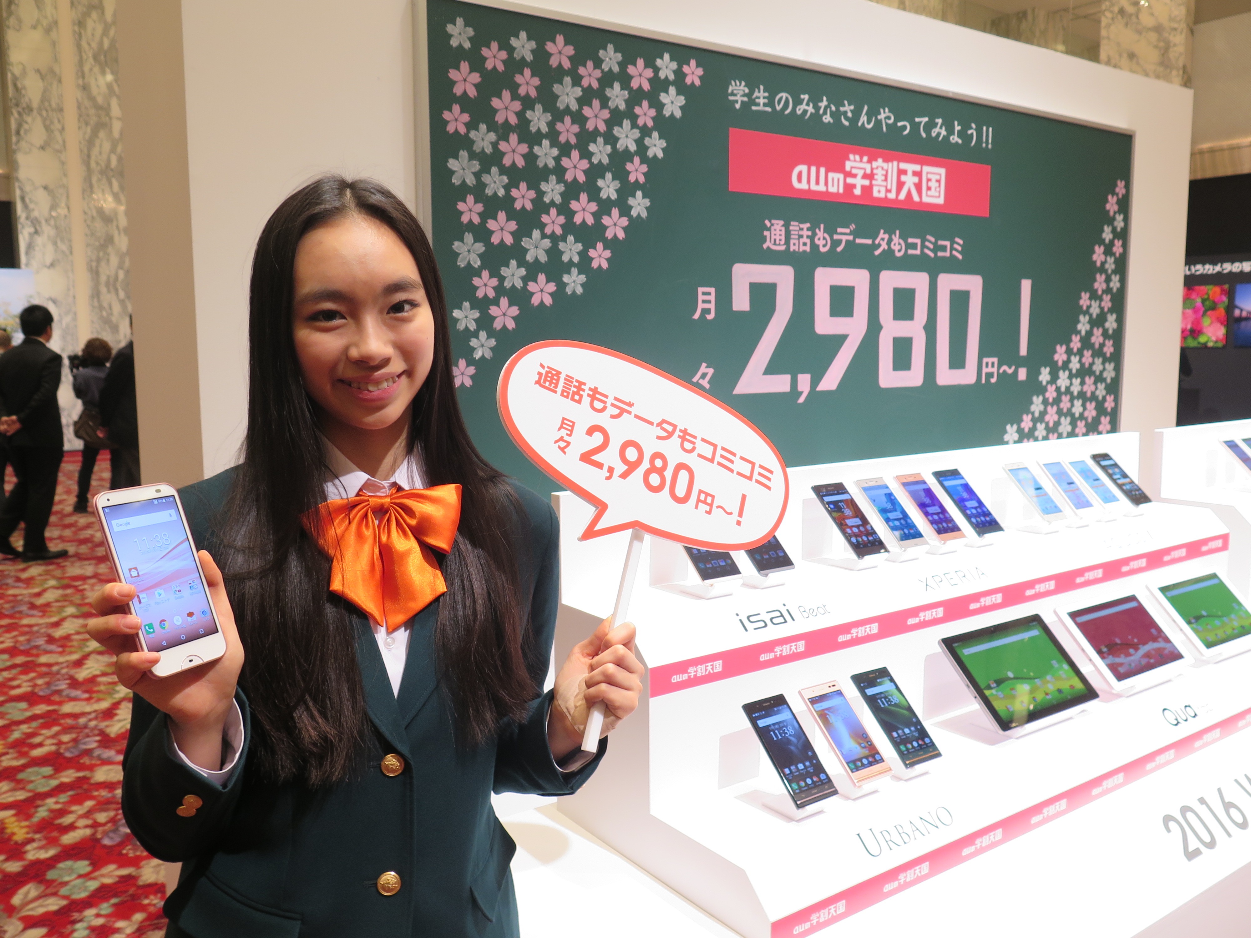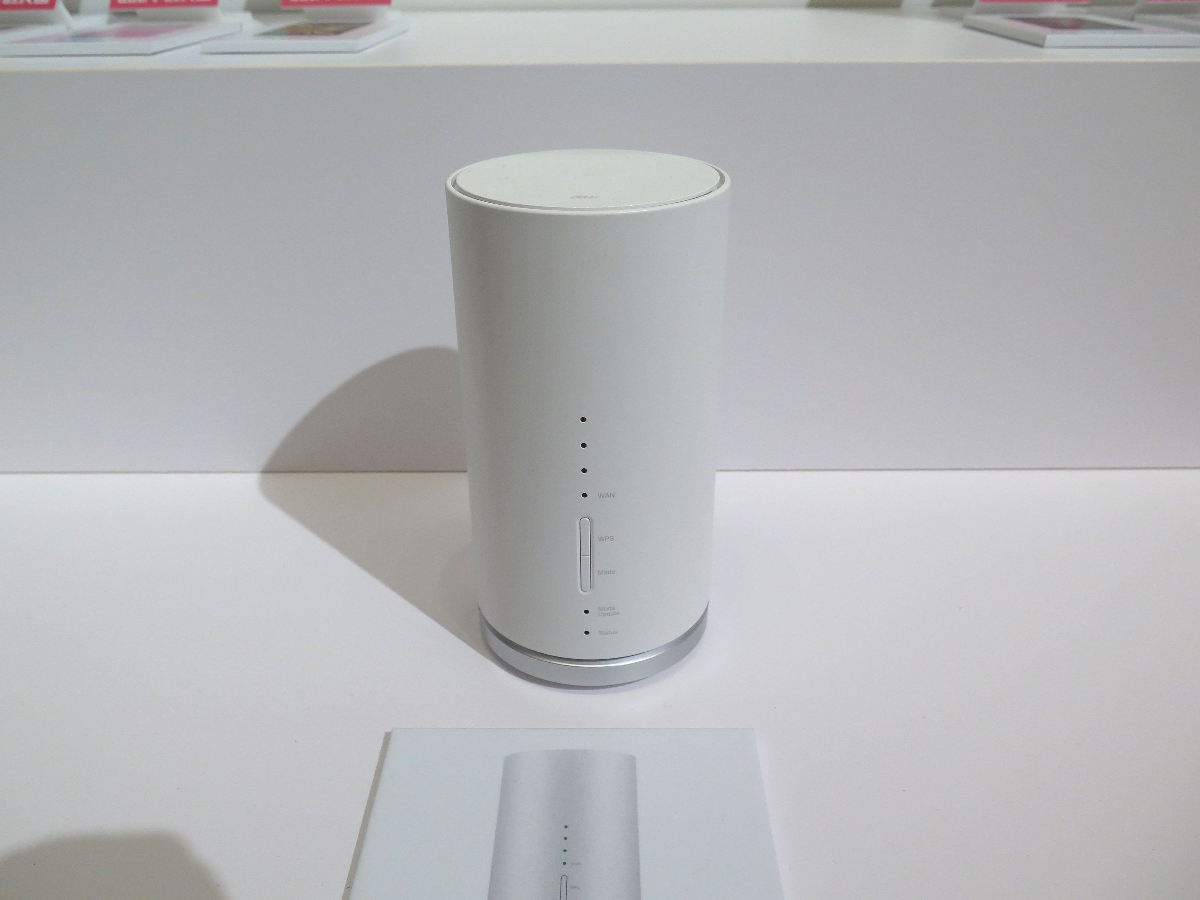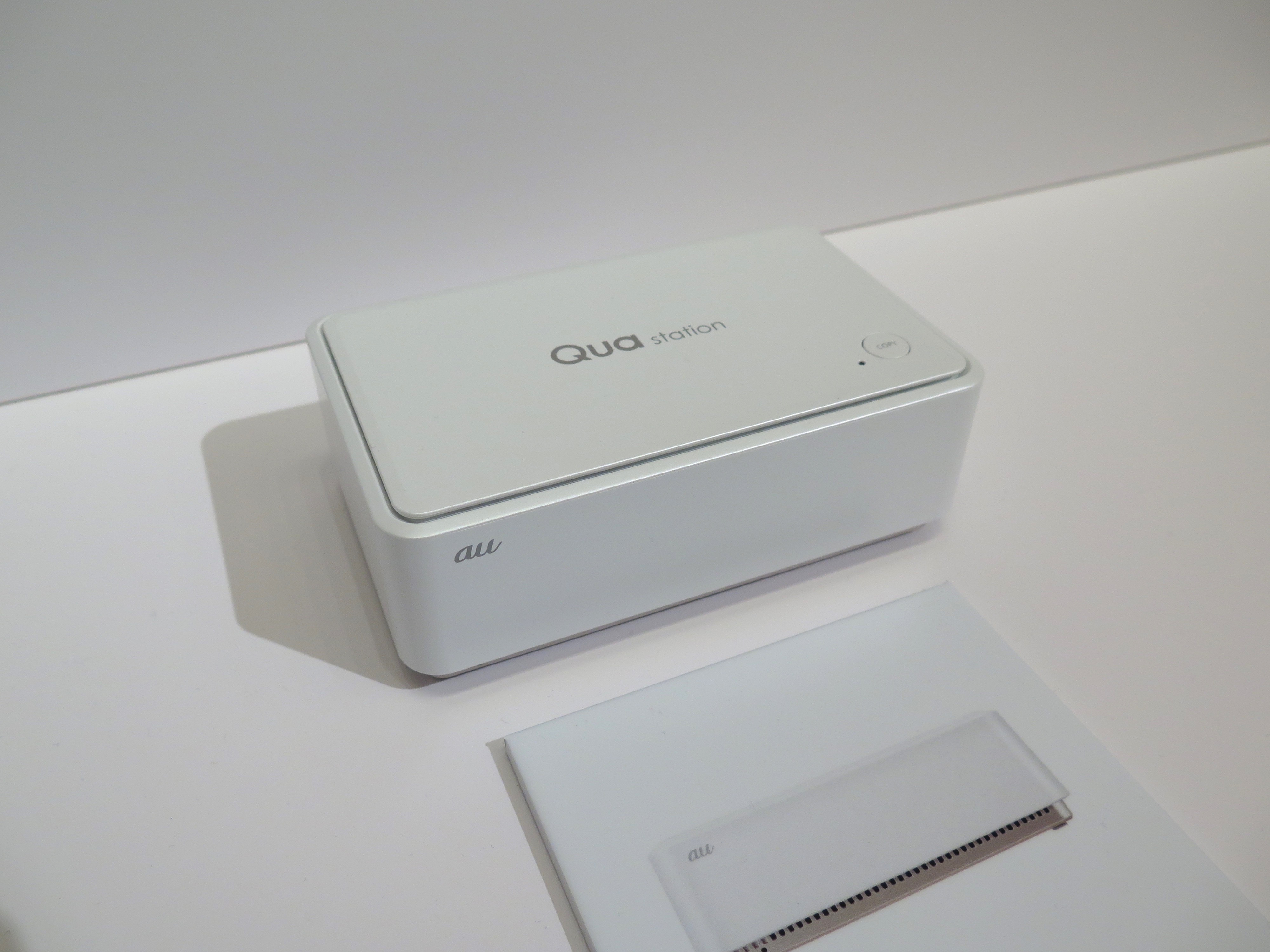 据え置き型の「Speed Wi-Fi HOME」(実質負担金0円/2月中旬発売)は、auショップなどで購入して持ち帰り、自宅にコンセントにつなぐだけで、すぐに無線LAN環境を作れることがセールスポイント。2.4G/5GHzのWi-Fi同時利用に対応し、最大40台の同時接続も可能。Wi-Fiの受信アンテナが高性能で、モバイルWi-Fiルーターと比べると、より広い範囲で高速通信ができることが実証済みとのことです。デザインもシンプルでいい感じですよね。