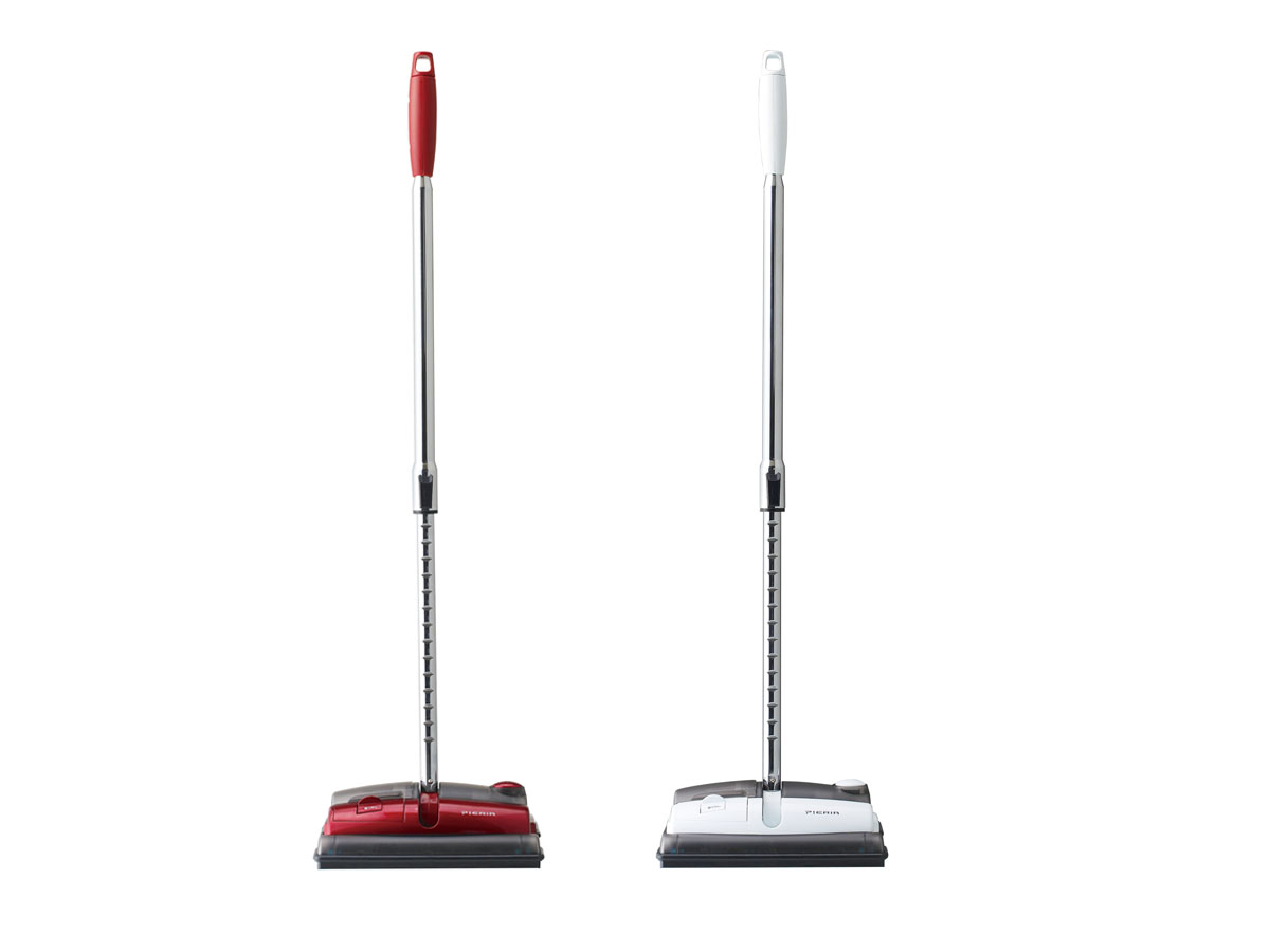 ドウシシャから登場した「コードレスふきとりスイーパー」(オープン価格、実勢価格7500円前後)は、“ほうき” “ちり取り” “ワイパー” の3つの機能を備えた掃除機です。