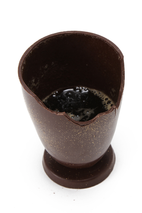 チョコビールはビールそのものがチョコレート風味であるため、本物のチョコレートとの相性も抜群。「チョコレート製グラス」は、チョコビールとチョコレートのマリアージュを楽しんでもらいたいという思いから開発されました。ビールと相性の良いカカオを厳選し、ひとつずつ手作業で形成。チョコビールを注いで飲めるだけでなく、チョコビールを飲みながらグラスを一緒に食べられます。