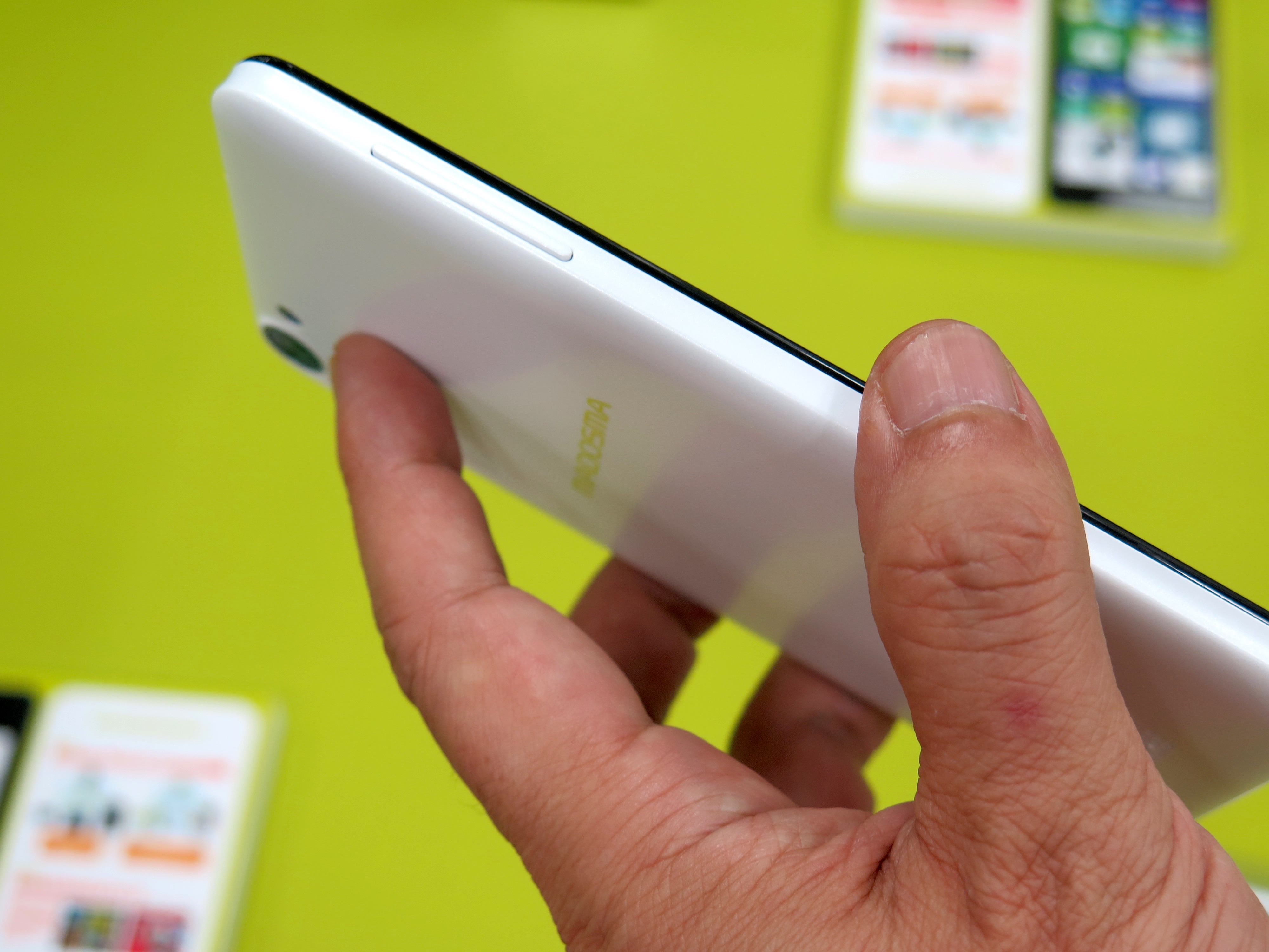 第一印象は「軽い」ということ。約5インチの大画面を搭載していますが、8.4mmという薄さで、重さは約125g。背面がラウンドフォルムになっていることもあり、片手で操作したくなるホールド感でした。サクサク、スルスルと、タッチパネルの反応も軽快でした。背面パネルが白なので、余計に軽く感じるのかもしれません。