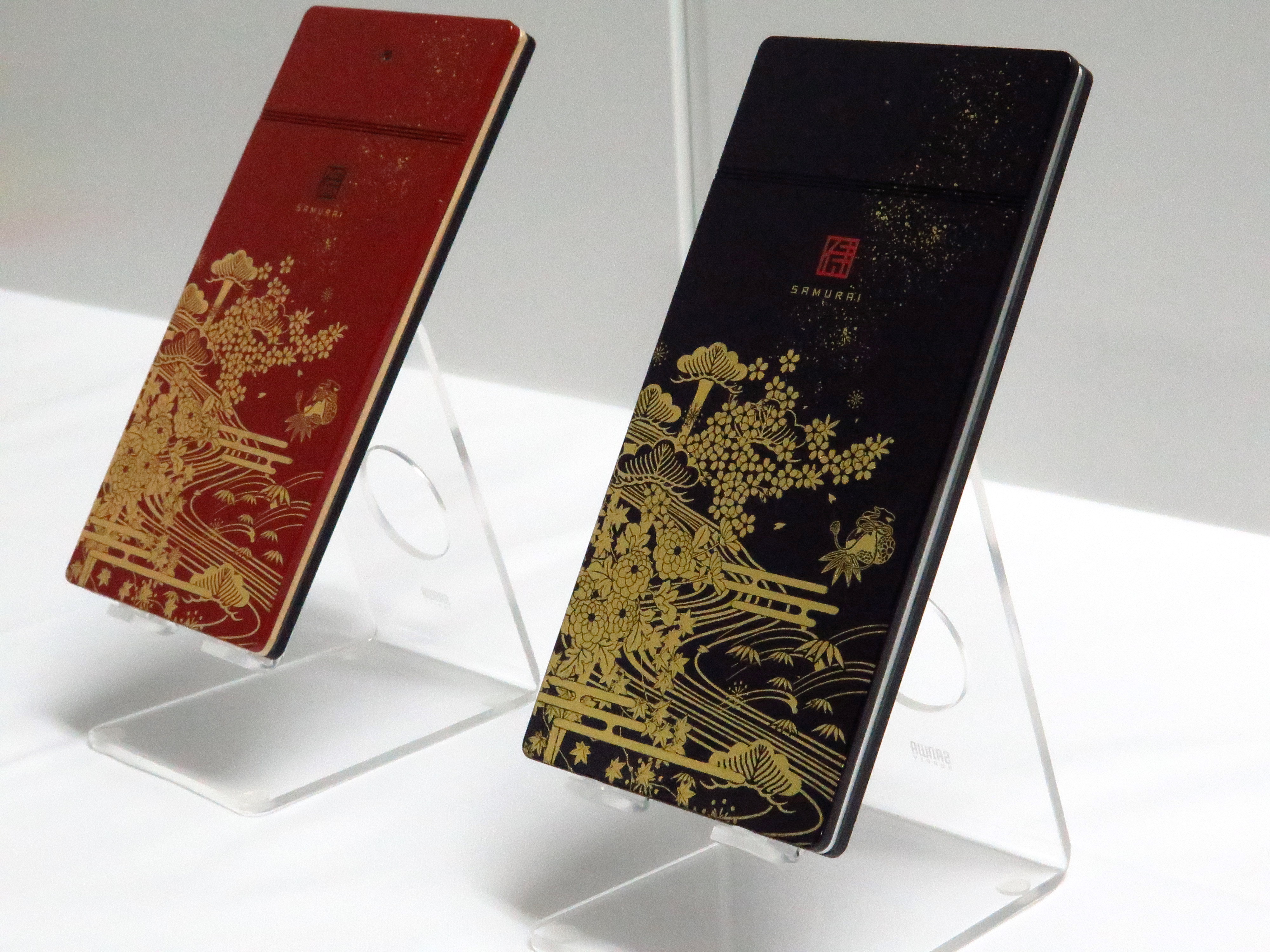その「World Mobile Congress」では、蒔絵をデザインし、「和」テイストをアピールするAndroidスマホも参考出展し、注目を集めていた。目立ち度ではこっちのほうがインパクトがあるなぁ〜と思うのだが、残念ながら、こちらは日本での発売予定はないそうだ。