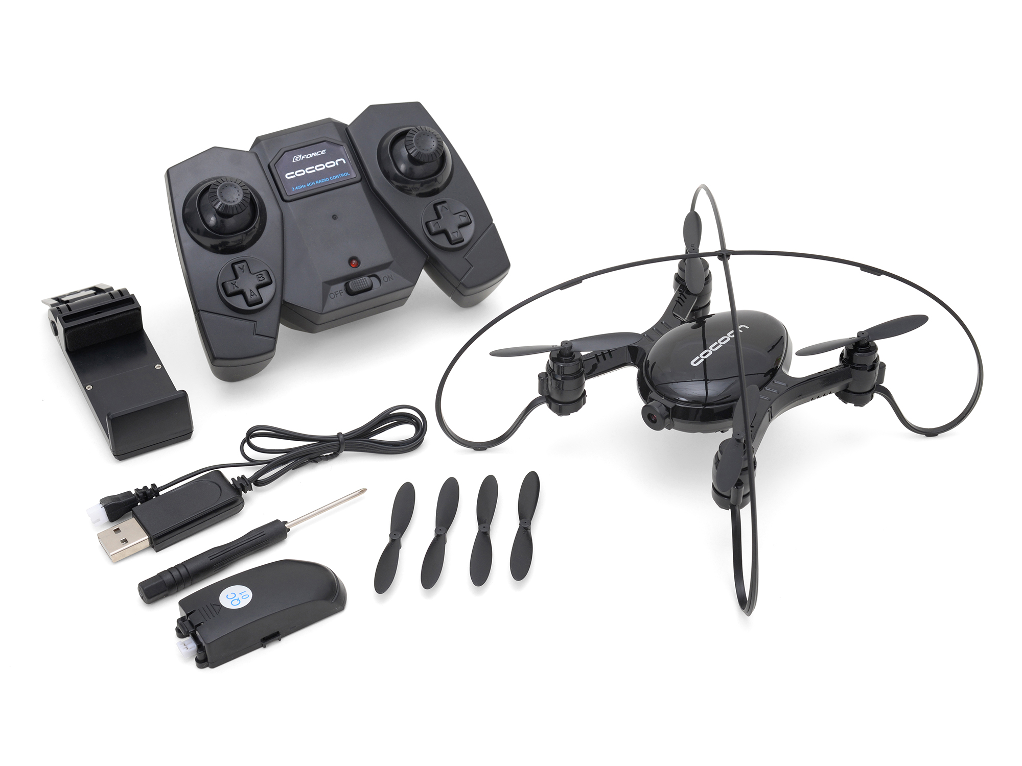 ドローンの専門商社ジーフォースから、199g以下(改正航空法対象外)のホビーユース・ドローン「cocoon(コクーン)」が発売されました。その機能は初心者にも優しいものばかり。ボタンを押すだけのワンキー操作で、自動で離陸・着陸が行えます。離陸後はスロットルレバーを離した位置で高度を維持するよう、気圧センサーがアシスト。
