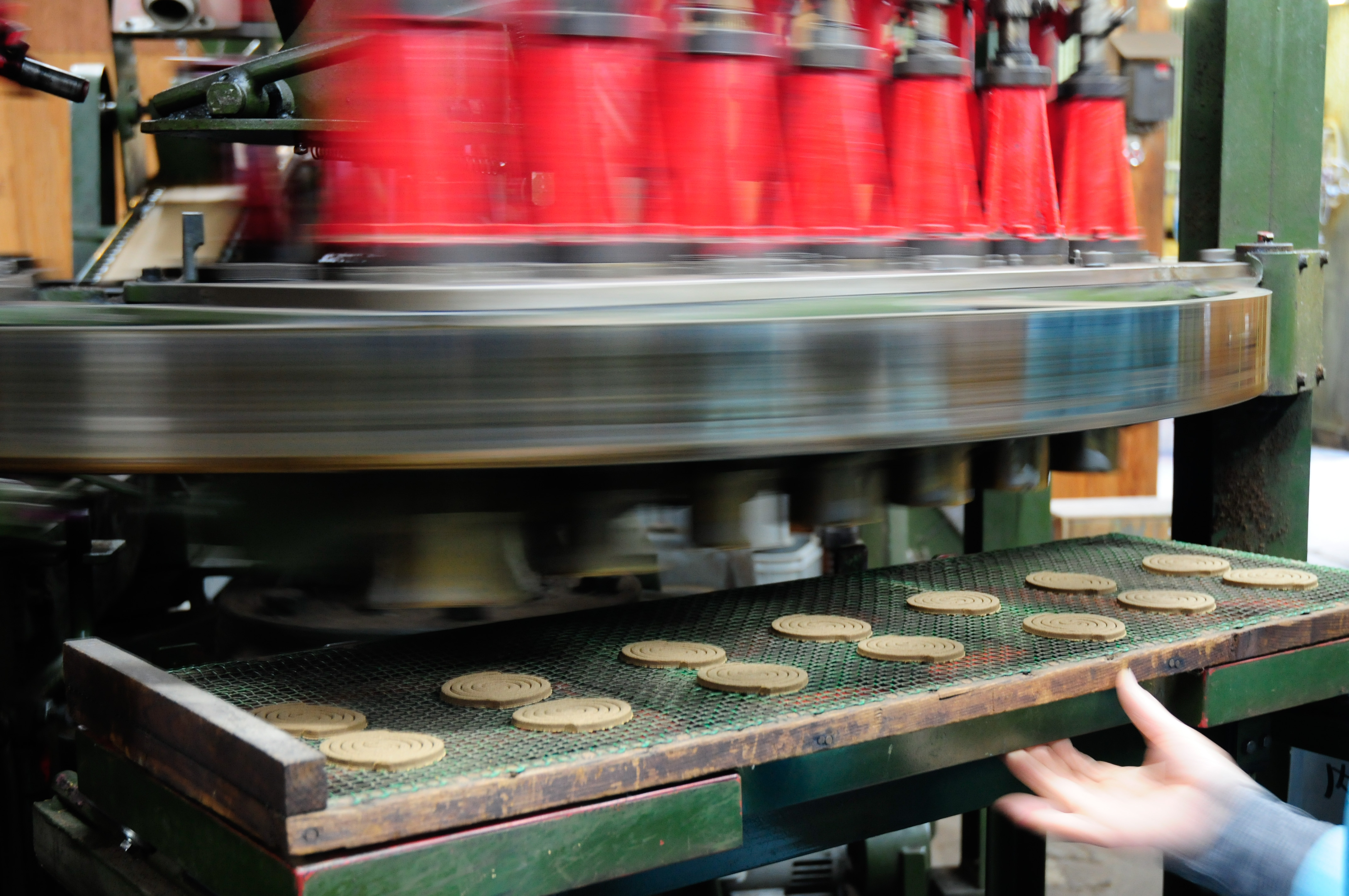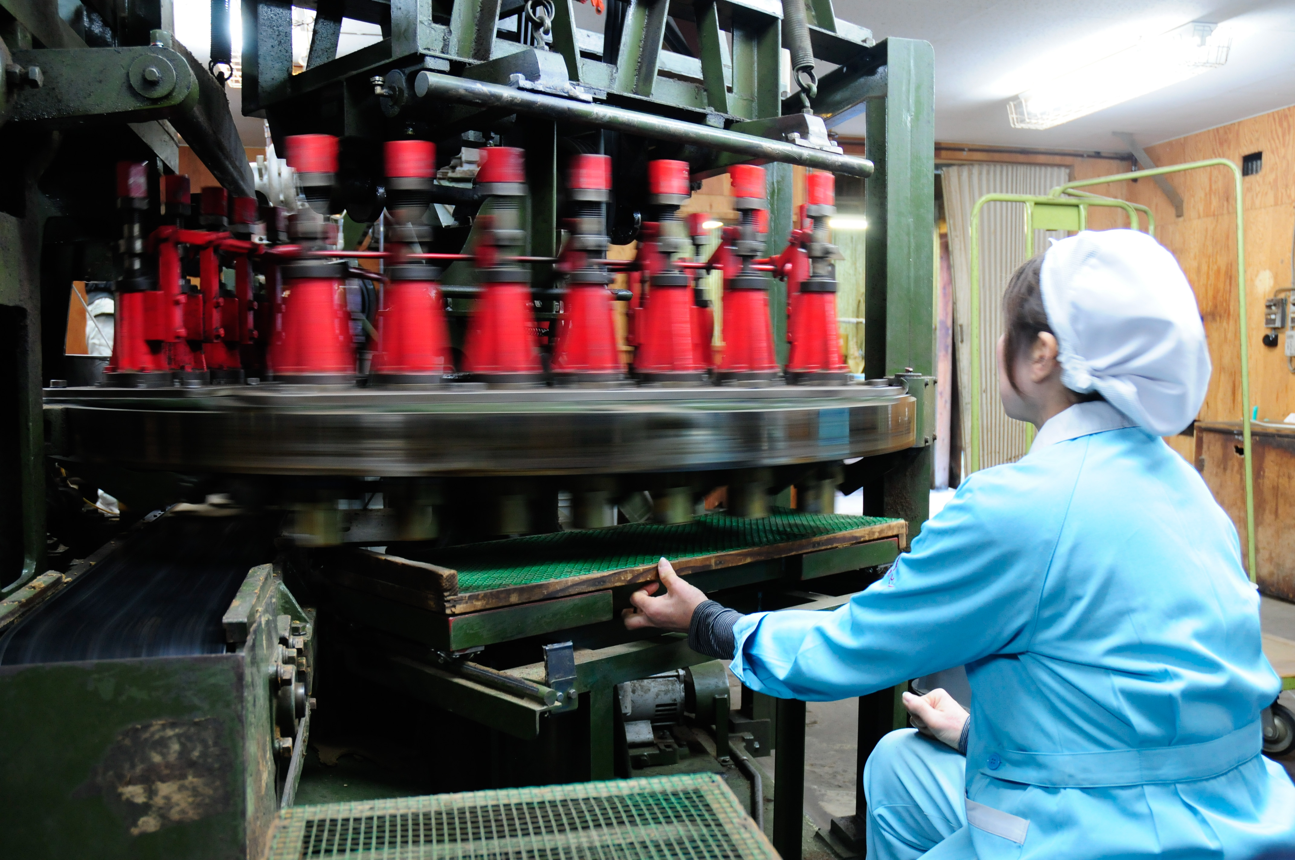 ●型抜き:板状に押し出し、機械で型抜き。ガチャンという音とともに、おなじみの“渦巻き型”に成型される