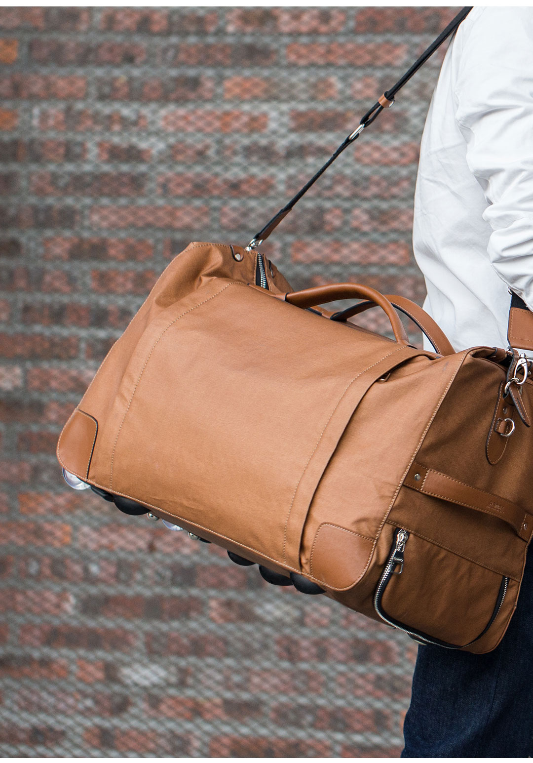 これまで “キャスターとハンドルが付いているボストンバッグ” は、いわゆるスポーツタイプのモノがほとんどでした。ビジネスやタウンユースでは、いかにもスポーツテイストなデザインで、ちょっと躊躇していた人もいるのではないでしょうか。
