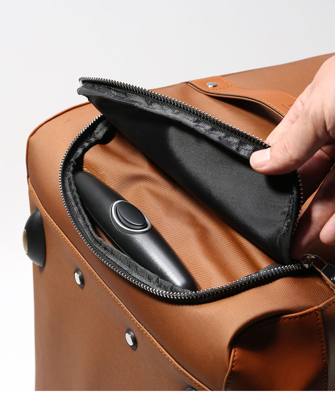 お土産などで荷物が増えちゃって肩掛けではつらいときは、ハンドルを引き出して、簡単にキャリーバッグに変身。もちろん、人混みの中や段差の多い場所などは肩から掛けたり手で持ったりすればOK。