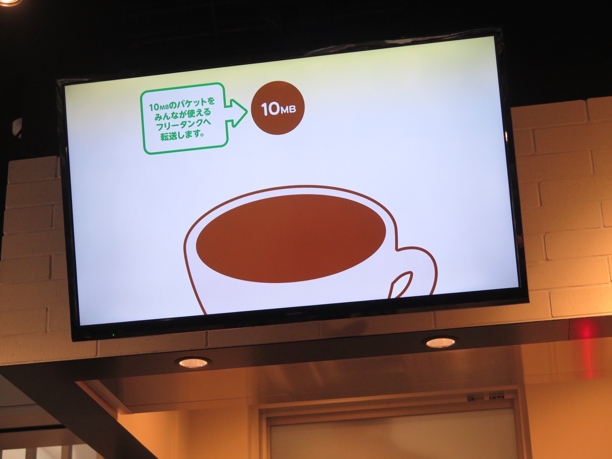 ▲割引でコーヒーを買うと、パケットが転送されたことが店内ディスプレイに表示