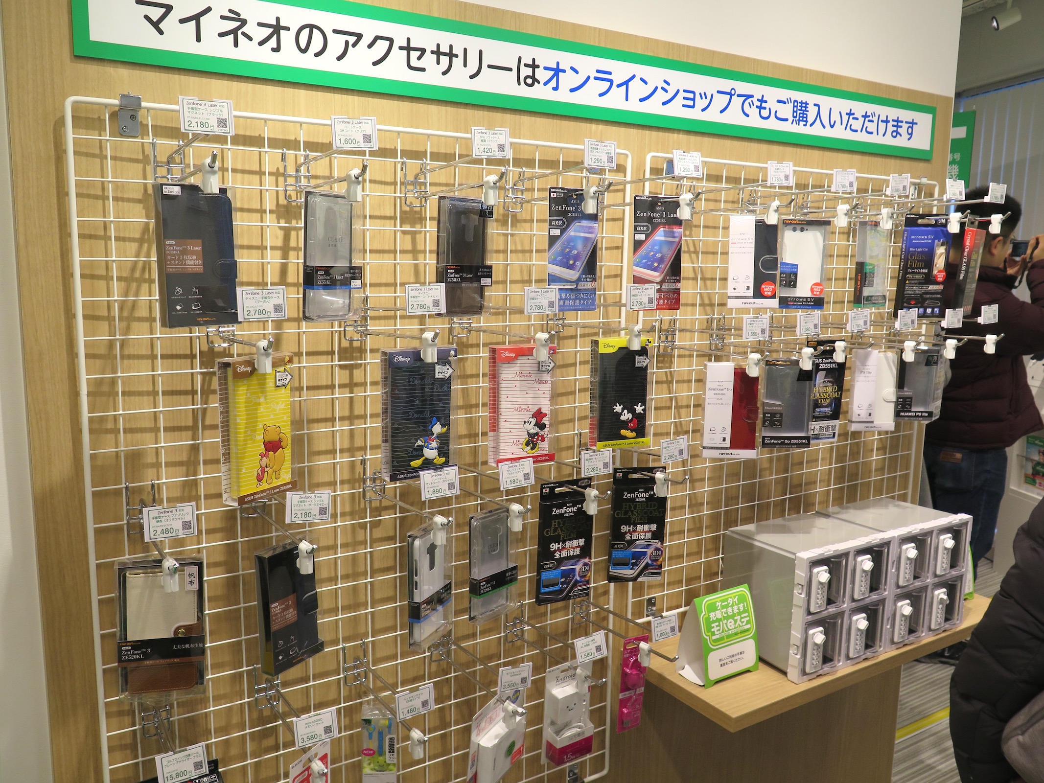 2Fには、新規申込カウンターがあります。SIMとセットで購入できるスマホも展示されており、デザインや操作性をチェックしてから、契約できる仕組みです。
