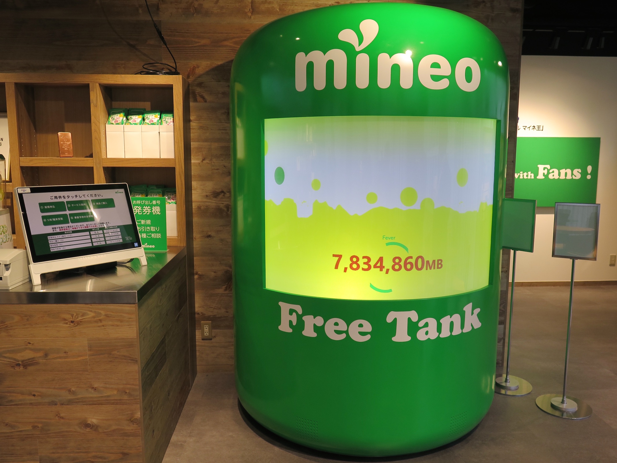 ▲mineo独自のサービス「フリータンク」を具現化したディスプレイ