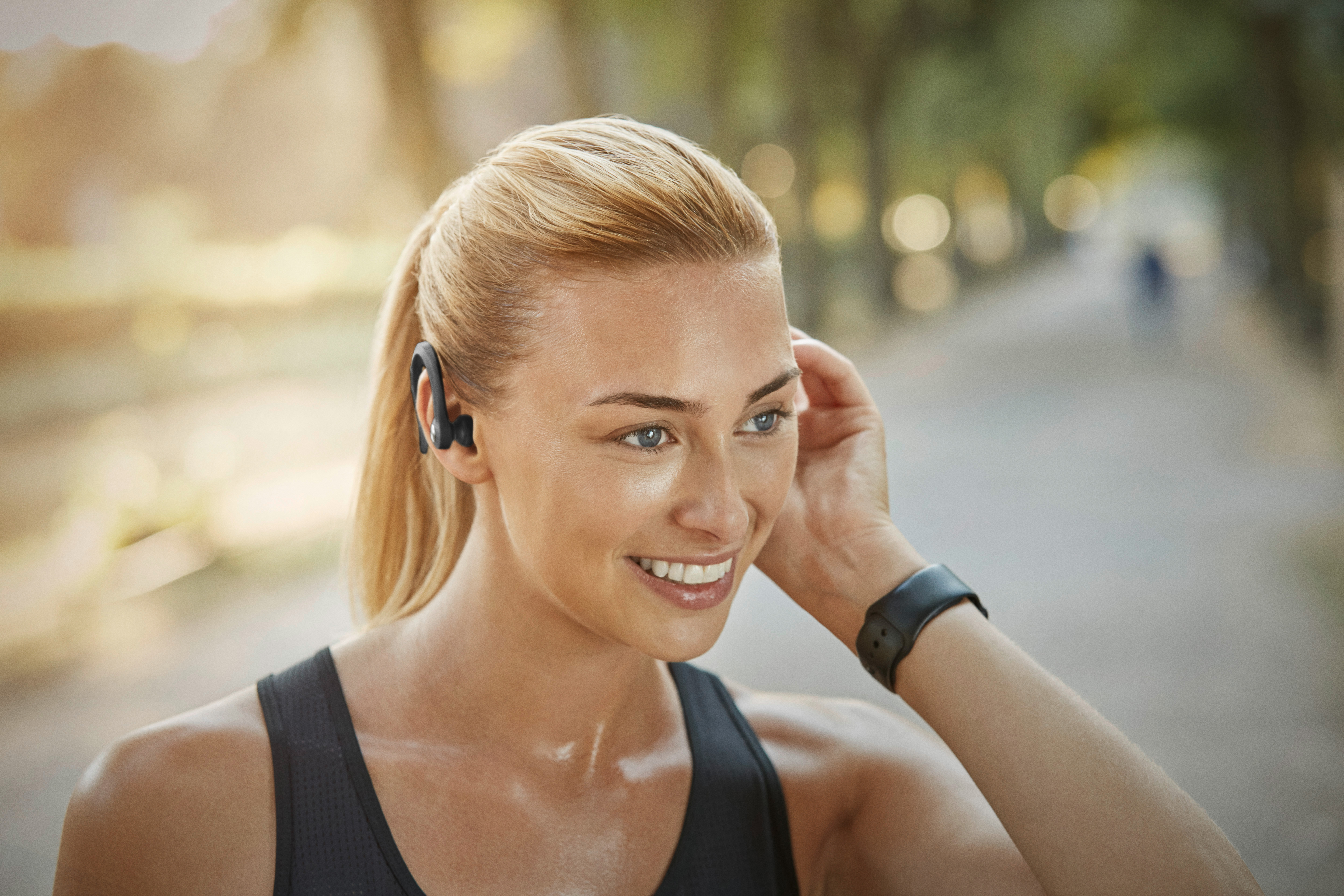いかにもエルゴノミックなデザインのイヤーフックは、補聴器メーカーの協力を得て開発されたもの。Complyイヤーチップは低反発素材で、どんな形の耳穴にもフィットし、激しい動きの際でもズレることなく集中を妨げません。前モデルから20%も軽量化されており、抜群のフィット感と相まって付けていることを忘れそうなほど。