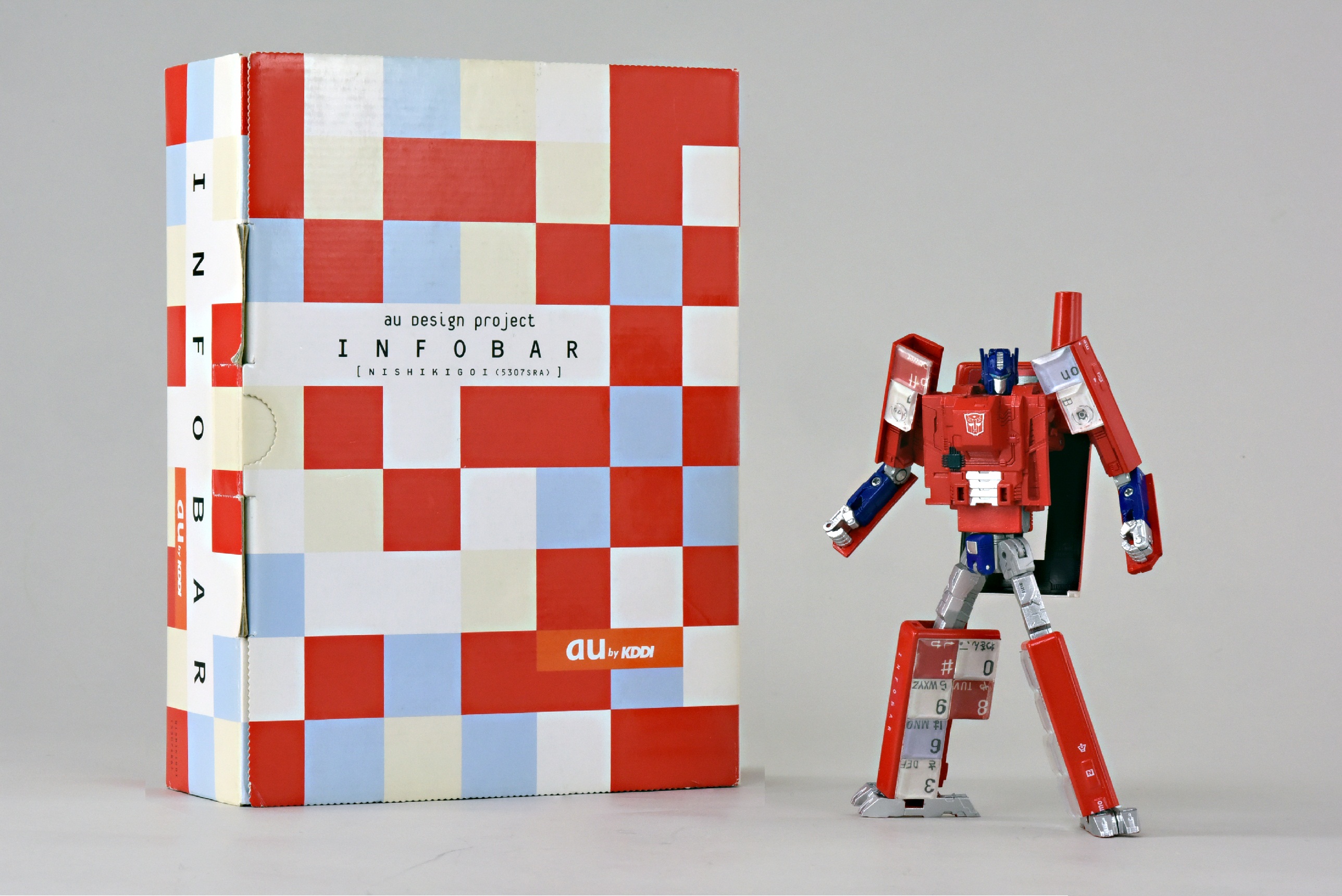 「INFOBAR OPTIMUS PRIME(NISHIKIGOI)」(5400円)の単体と、「INFOBAR OPTIMUS PRIME(NISHIKIGOI)」「INFOBAR BUMBLEBEE(ICHIMATSU)」「INFOBAR MEGATRON(BUILDING)」の3体セット(1万6200円)の2コースです。