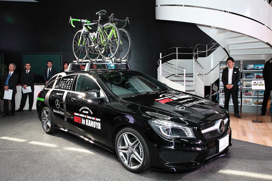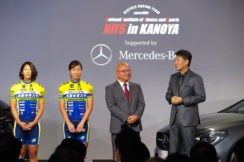 そのほか、強豪・鹿屋体育大学 自転車競技部のチームカーとして、CLAシューティングブレークが提供されることも発表。同校の選手2名と黒川剛監督がステージに上がり、今後の抱負を語りました。頑張っていただきたい!!