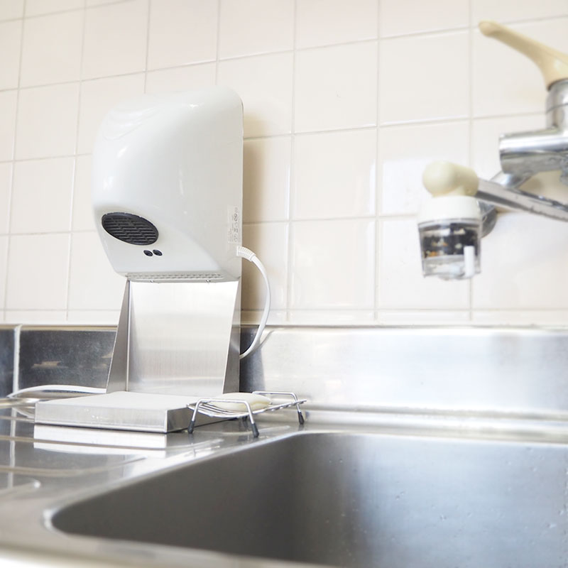 自宅の限られたスペースで使うので、水滴をまき散らすことなく濡れた手を乾かせるのは嬉しいポイントです。